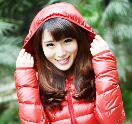 也是稍斜刘海,有修脸效果哦,两颊的直发随性自然,散发着清新气息,一个笑容,美极了。