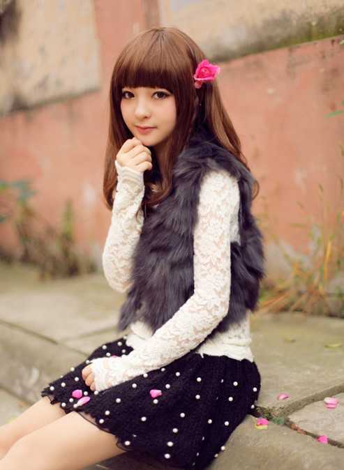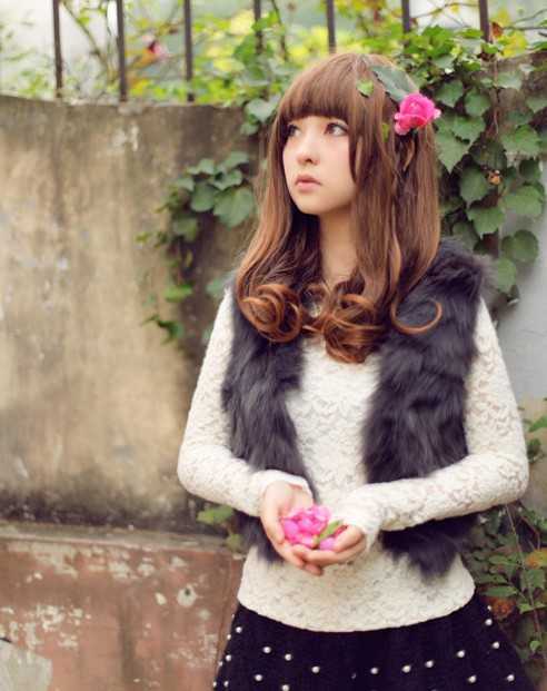 可爱MM最爱的中长发卷发,发梢处的弧度卷发超美的,而且还具有减龄效果哦,厚重感的齐刘海,两颊稍带凌乱感的修脸发梢,搭配起来很美哦。