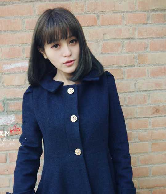 内扣感觉的中长齐肩发型,特别美,透着缝隙的碎刘海显得清新动人,稍微将一侧头发往耳后拨,更添女人味,不错哦。