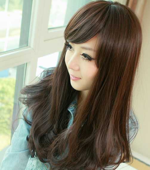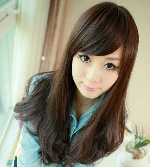 2013最流行新款发型之一,这款斜刘海中长卷发修脸又减龄,很适合圆脸以及方脸型MM,斜刘海和两颊卷卷发尾相互之间都有一个很好的修脸效果,很棒!