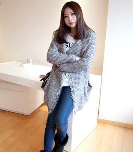 2013年时尚流行的中分啡色中长发,两颊内扣发尾,起到很好的修脸效果,棒哟!染色后的发色更是增添了时尚感。