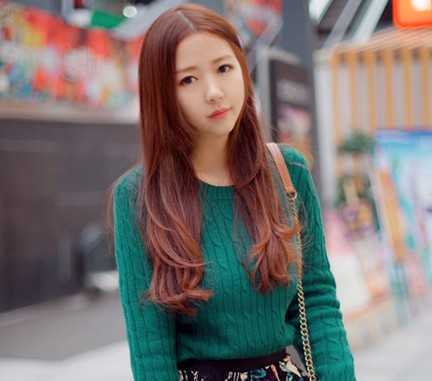 一头蜜糖棕发色在2013年春季相当时尚,中分刘海,两颊带点内扣发尾,修脸最佳!韩式风格一定会吸引很多的MM!
