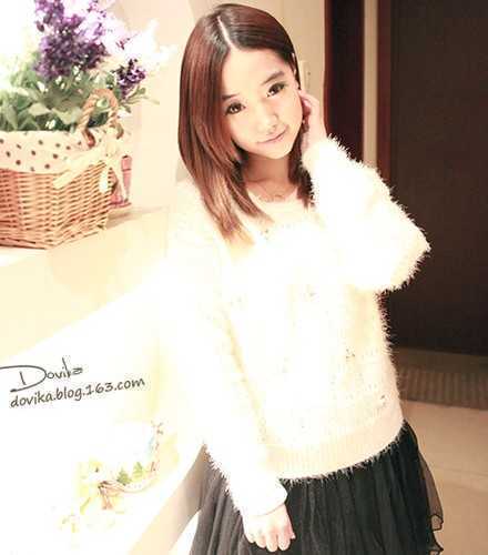 具有层次感的一款2013中长发,中分刘海,两颊内扣发尾很好修饰了脸颊,浅棕发色,最IN哦!