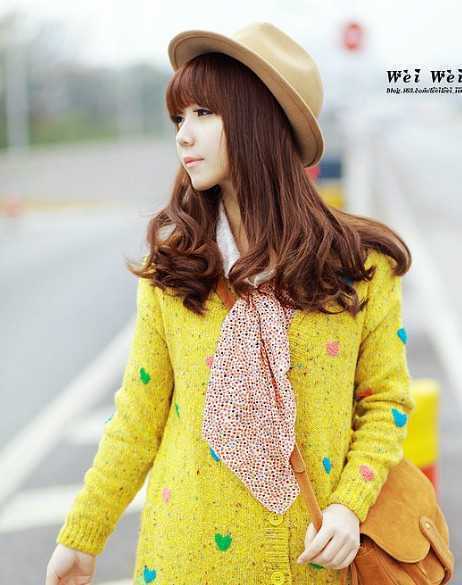 搭上帽子,从侧面看,春天的颜色,自然甜美,优雅动人,漂亮的新款中长发,太让人心动了。