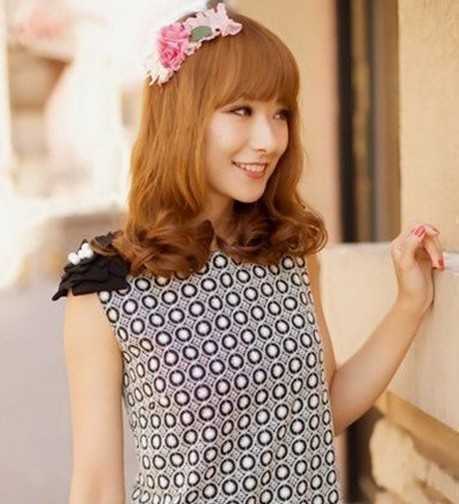 梨花头发型在2013年就是大热哦!这款齐肩短发发型,两颊是卷卷的发尾,看起来真的很显甜美、乖巧,头上戴着的发饰更是增添了时尚,美感!