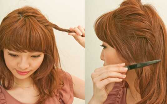 Step3:从刘海分界出取出一束头发,逆时针扭转发束。