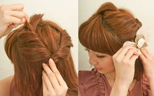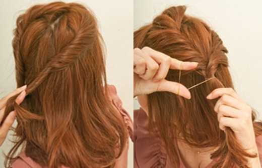 Step5:用同样的方法从另一边取出一束头发扭转起来。