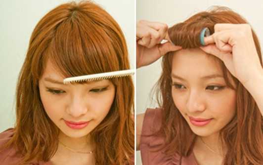 Step2:将前面的刘海,稍微弄湿下,用卷发器将前面的刘海向内里卷,用吹风机吹定型。