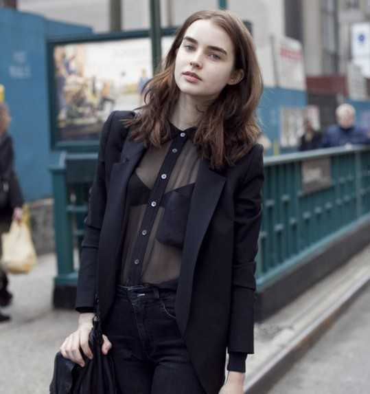 欧美范的OL中长发型,温和的棕黄发色把女生白皙的肤色尽情演绎出来,俏皮动感发梢给职场上严肃的你带给别人一种活泼感,黑色小西装和透视衬衫,不仅优雅还非常时尚。
