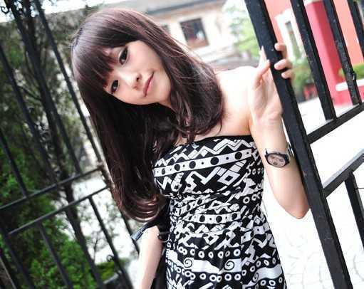 这款齐肩女生发型中略带小甜美又不过于孩子气的感觉,黑色柔顺的秀发,在2013里不仅显得优雅有气质,而且还瞬间变成了小脸美女呢,再搭配上性感的抹胸裙十分时尚。