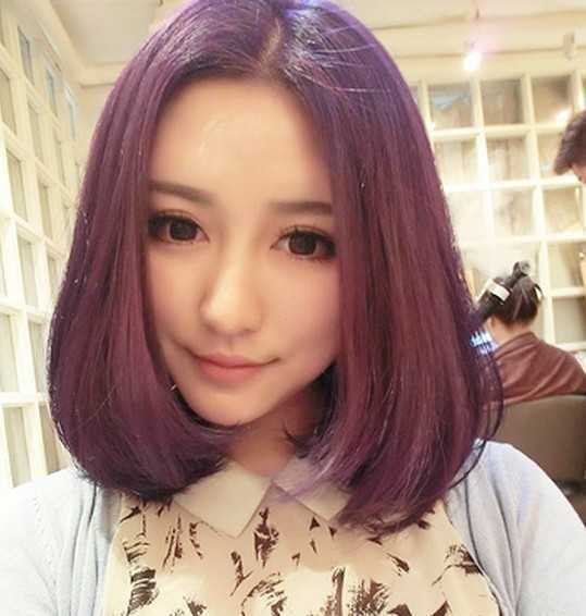 淡紫色的染发,有着十足的时尚潮流感,更是全场最的焦点!修剪齐肩的头发散发着知性迷人的魅力,中分的刘海让脸型立显小V感觉,一款个性时尚的发型还不赶紧弄起来?