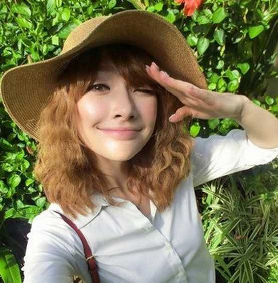 极具田园风的一款中长玉米烫发,看似蓬松的玉米线条,带出时尚最清新的感觉,偏分的刘海凸显俏皮的大眼,在大片帽子的衬托下,搞怪的小女生很清晰的展现出来。