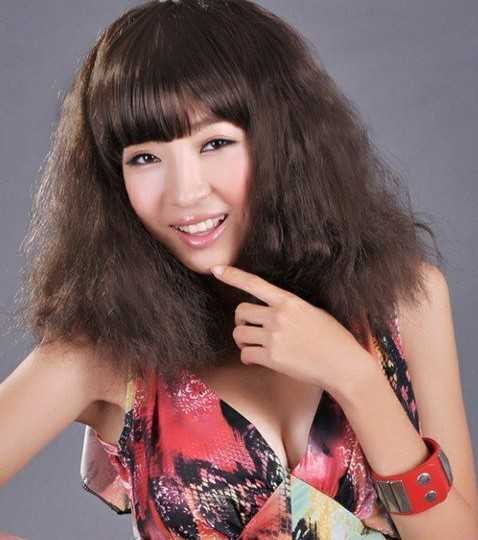 这样蓬松的玉米烫发应该吸引了不少人的眼球吧,把一张迷人的小脸蛋紧系其中,有着超棒的修颜功效,柔顺的齐刘海变得安静甜美感,为整款中长发型增添了几分小淑女的甜美气质哦!