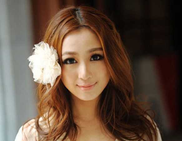 甜美女生最爱的一款中长发发型,选择中分刘海的微卷烫发,很好为脸型作了一个极好修饰的铺垫,侧搭的花朵蕾丝发饰,简单优雅的气质尽显其中。