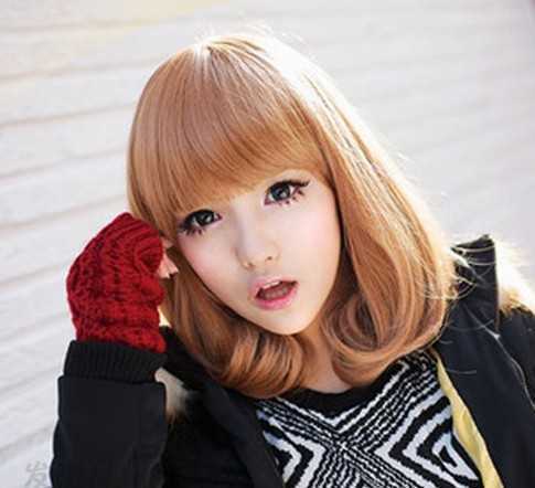 内扣式的梨花中长发,深棕色的染发打造下,很好衬托着女生白皙娇嫩的肌肤,齐刘海同样也起到了凸显大眼的作用,动感的卷发尾,为甜美俏皮埋下了最好的基础。