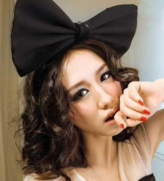 这款齐肩的蛋卷发型,却能很好彰显女性最妩媚的轻熟女感觉,不规则的卷发弧形,看起来相当活跃俏皮,顶部上的一个大蝴蝶结发饰,个性魅力十足呀!