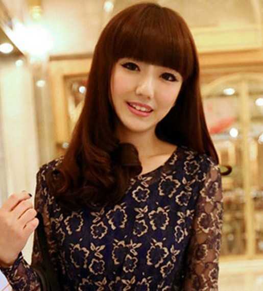 韩式中长发的动感卷发,柔顺的发质给人十分温柔甜美气息,发尾处弄上螺旋式卷弧形,搭配上厚感的齐刘海,增添了几分可爱女生的娇俏活泼感觉。