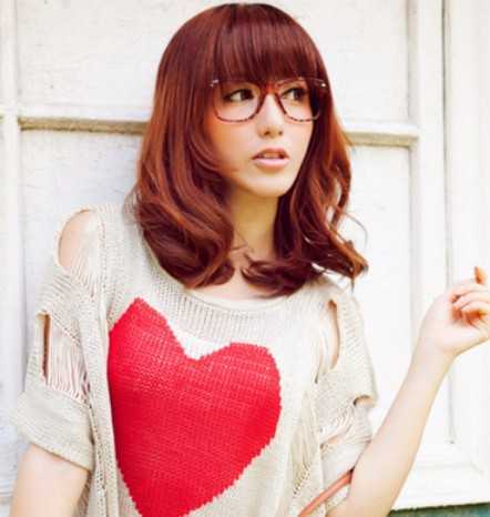 一头棕红中长发,就是抢眼十足!发尾处内卷扣的设计,最减龄修脸,戴上一副眼镜,学院风十足!2014年女生最喜欢哦!