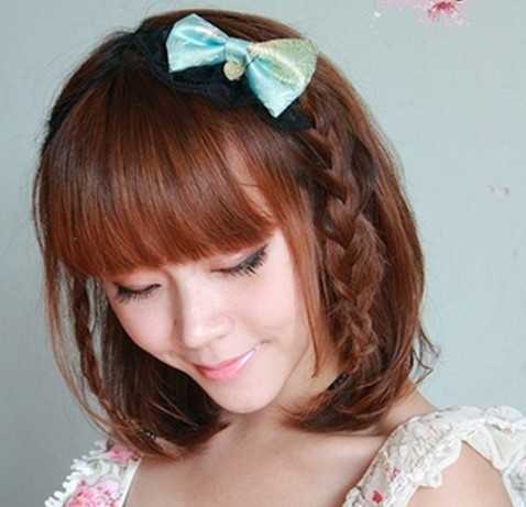 超温婉甜美的感觉,正是来自于这款齐肩的短发造型,两侧编织的小发辫设计,融入了少许清新邻家女孩,整齐的刘海搭配棕黄发色,2014年同样是时尚哦!