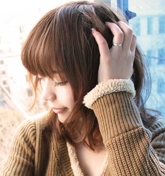 这款齐肩的中长发发型,用手随意抓起的发丝,自然又显清新甜美气息,内扣的齐刘海修颜极致。