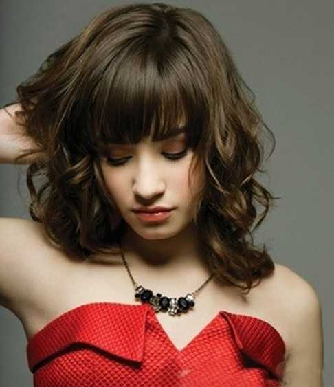 个性知性美的中长烫发,散发着几分韩系优雅气息,淡淡的浅亚麻色染发和齐刘海的结合下,搭配红色小礼裙,性感且小妩媚。
