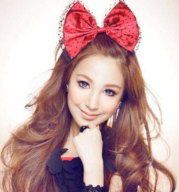 今年最流行的一款韩式中长烫卷发,大片的卷发发型,配上一个夸张而可爱的发饰装扮下,精美的大地色妆容作完美点缀,显然是甜美、清新十足呀!