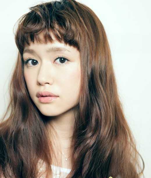 光滑质感的中长微卷头发,隐约透出小女人优雅温婉的气味,独特的翻卷齐刘海设计,亚麻棕色的染发,绝对是潮人必备的发型搭配。