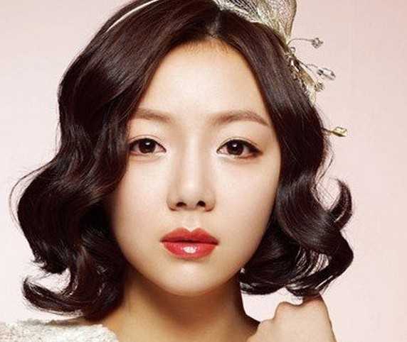 水嫩嫩的靓丽红色妆容,配上一个卷翘的齐肩发型,气质的中分刘海,再装饰上精美发箍,让这个新娘子倍增那优雅贵气的韩系感觉。