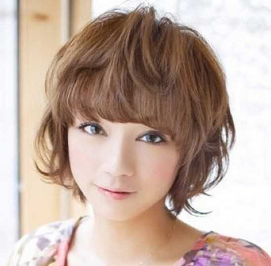 这样的齐肩短烫发很适合圆脸的MM,发丝呈C形的卷曲设计,紧紧包裹住脸颊,进行了完美修颜,内扣的刘海结合挑染栗色,2014更显得青春活力。