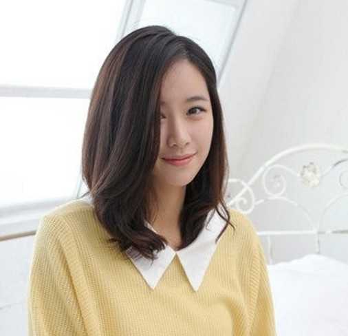 侧分的大片厚重刘海修饰半边脸部轮廓,使圆脸型更加精致,微卷的中长发,显得分外的小清新气质魅力。