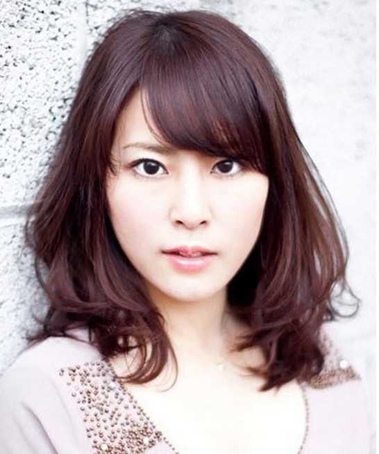 酒红发色衬托出白皙的肌肤,中长发的烫发型将精致小脸轻柔的包裹起来,再来个简单的斜分刘海,优雅时尚让人心动不已。