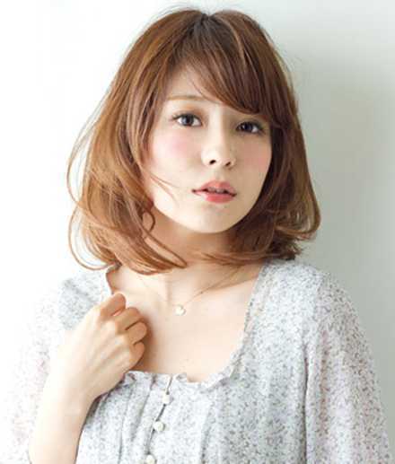 发型点评:这款斜刘海齐肩烫发修颜减龄,烫卷的发尾轻轻包裹着脸蛋,展现轻熟女风之余还倍增甜美范。