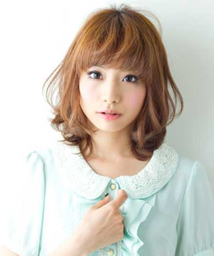 发型点评:碎齐的刘海搭配齐肩短烫发丝,一款减龄效果超棒的发型,染上的棕黄发色更是很好衬托出白皙肌肤,超人气,甜美吸晴哟!