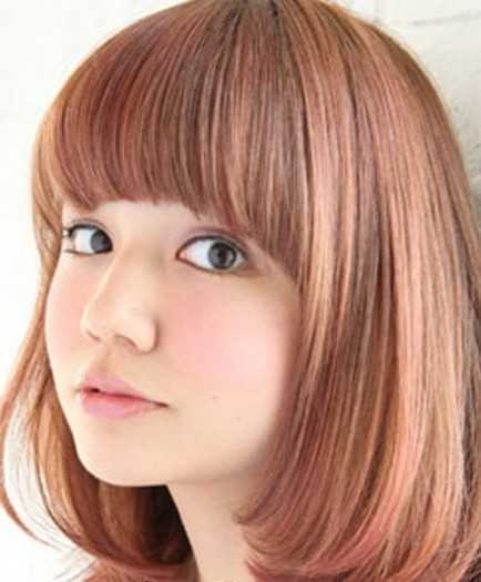 养眼好看的棕红染发色,融入了最新日系齐肩发型的流行趋势,尽显出潮女范儿,内扣的短齐刘海设计,缩小了女生的脸型,更具可爱甜美气息了。
