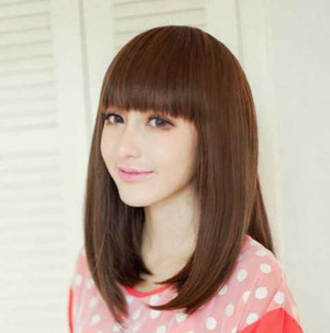 这款时尚优雅的日系齐肩发型,厚重齐眼的齐刘海,加上两边的鬓发,很好的修饰了脸型,整体造型看起来十分的甜美可人。