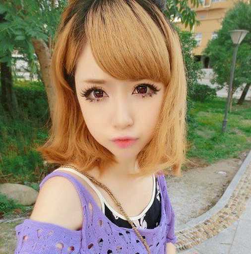 这是一款非主流美眉大爱的齐肩发型,卷翘的发尾设计,活泼又显得时尚,搭配半月形的刘海后,显得甜美、可爱。