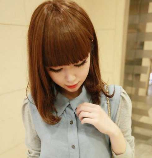 微卷设计的齐肩发型,凸显了甜美的气质,齐刘海与微卷的发尾,打造了“甜心教主”形象,栗色的发色,衬托出了白皙的肌肤显时尚。