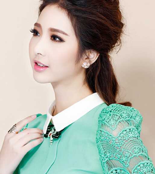 职场女性最优雅的造型搭配,长发在脑后随意挽起发髻,淡雅的妆容,绿色衬衫,展现出是女性独立自信的气质,十分好看。