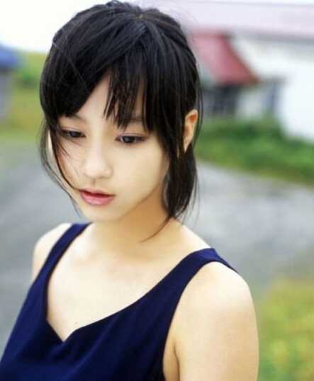 齐肩的半扎发发型设计,无疑是清爽优雅的最尽显!稍微显得凌乱的齐刘海发丝,将标志的脸型衬托完美,乌黑的发色,显露出自然大方女性魅力。