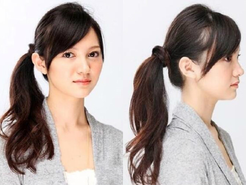 最后打理一下刘海并将发顶拉得蓬松一下,略显高耸的发顶可拉长圆脸MM的脸蛋,加上侧马尾与斜刘海的修饰,圆脸瞬间变瘦。