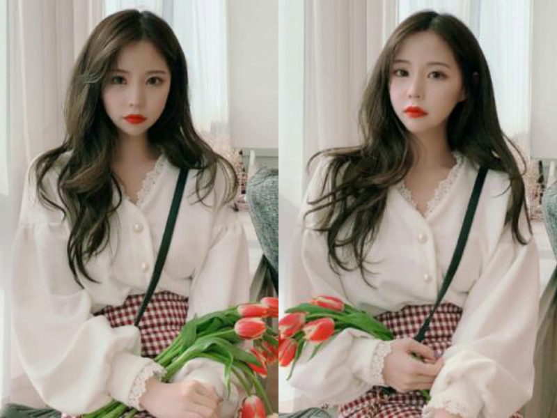 女生清爽的中长发,加入微卷发的造型,头发变得蓬松丰盈起来,加上时尚的染色,立马提升了造型时髦感,无刘海下一张白皙的脸,红红的唇,很是吸睛,很有女神的既视感。