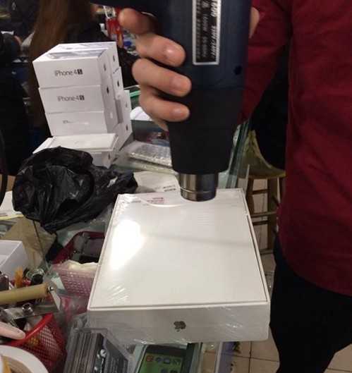 而网友在网络上购买iphone时,很多商家都会称自家的iphone是三码合一的原封机,其实这个三码合一是在翻新后,用专业的激光打码机在机身和包装盒上打码,然后再用塑封机进行包装。