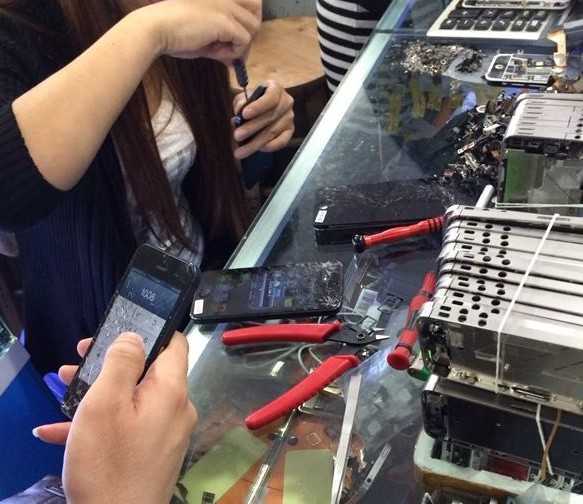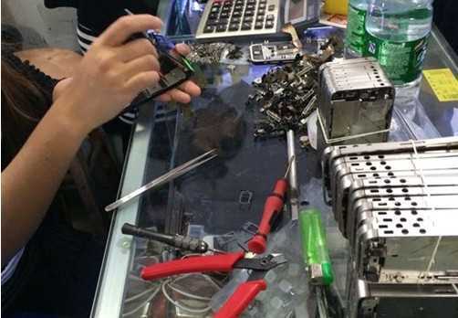 翻新的过程是先将加收来的各种旧机先拆掉,然后将里面完好无损的零件取出继续使用,再将边框打磨,然后再将所有零件拼装起来,这就成了一部新的iphone了。