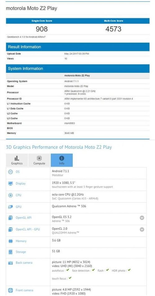 Moto z2 play在外观上没有太大的改变,内在上做出了调整,一起来简单了解下该机的信息,该机运行Android 7.1.1版本的定制系统,内置骁龙626处理器。