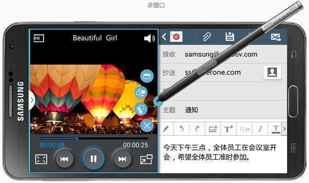 三星N7508V的S Pen浮窗指令宛如神奇的魔法,助您瞬间完成各项指令,您只需将S Pen悬浮于手机屏幕上方位置,轻点笔杆的按钮,屏幕上就会自动弹出S Pen浮窗指令的5个常用的强大功能:智能备忘录、随剪随贴、屏幕编写、S搜索和随笔窗口,S Pen浮窗指令可随时开启,省去了反复切换屏幕的麻烦,让你的任务处理更加轻松便捷。