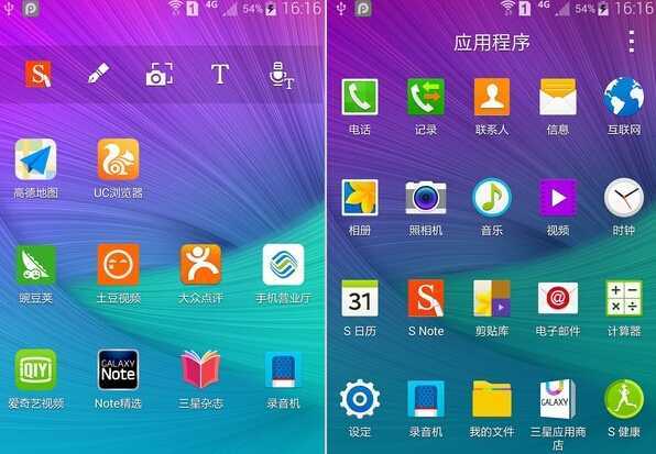 三星GALAXY Note4搭载的系统是由Android4.4.4的深度定制优化,依旧保持Touchwiz的风格和主色调,不过系统界面经过更深层级的扁平改造,已经让Touchwiz无论在底层UI还是主视觉都过渡到扁平状态。