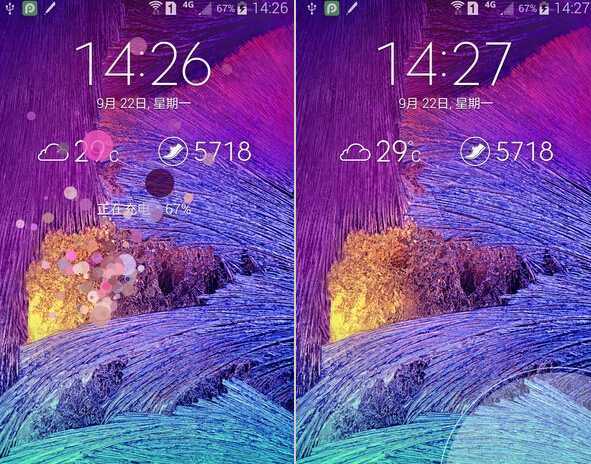 三星GALAXY Note4全新默认壁纸颇有几分梵高《星夜》图特色,手动解锁也独具系统水面涟漪效果和空灵回环的系统声音,另外Touchwiz系统也依旧保持二级菜单,底部抽屉栏在二级菜单界面也被隐藏。