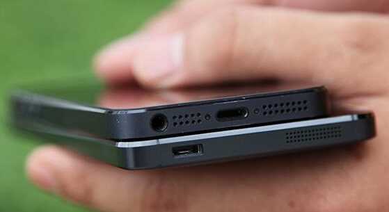 小米4底部的扬声器和数据线接口与iphone 5的也很相似,但小米4的天线位于底部与顶部,并不像iphone 5的在侧边,这由小米4底部不锈钢框架中有塑料质地的断续之处可以看出,这样的设计是为了防止金属框架对信号造成出现屏蔽问题。