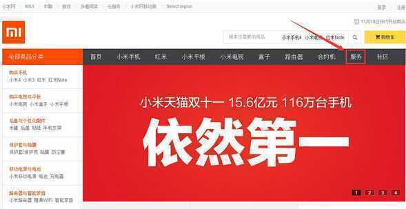 步骤一:登陆小米的官网,然后在主栏目上找到“服务”栏目。