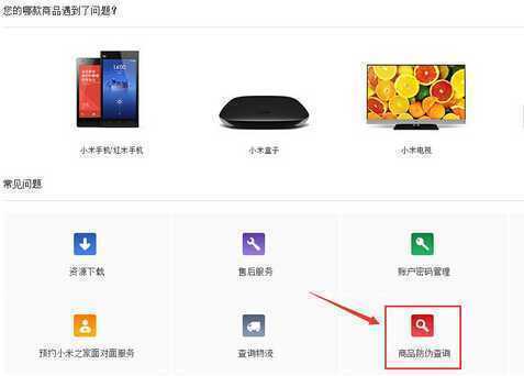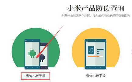 步骤三:进入页面后,可看到有小米手机、小米平板等产品的真伪查询,选择“查询小米手机”。